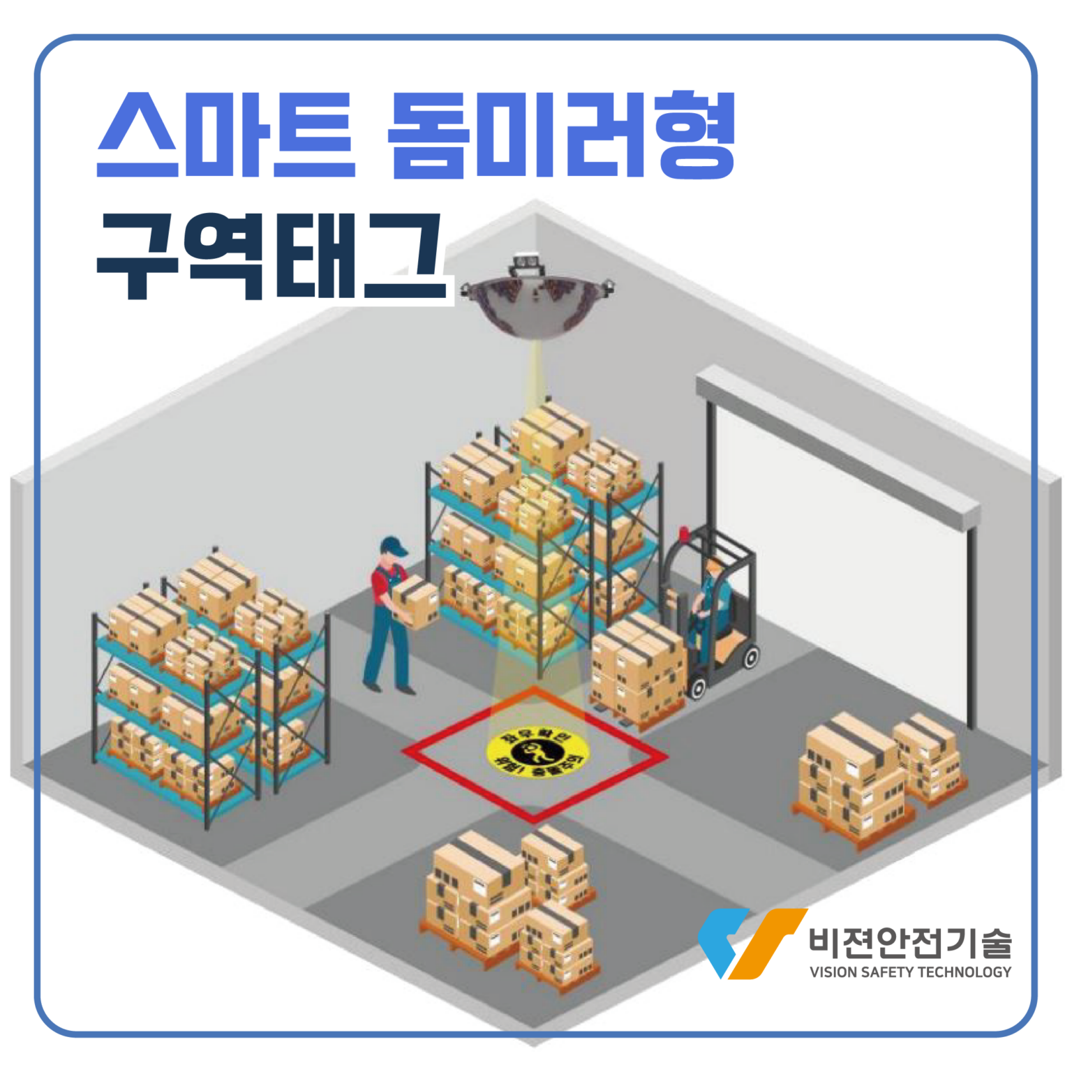 안녕하세요. (주)비젼안전기술입니다. 오늘은 여러분께 사각지대 경보 시스템중 하나인 스마트 돔미러형 구역태그에 대해 소개해 드리려고 합니다.