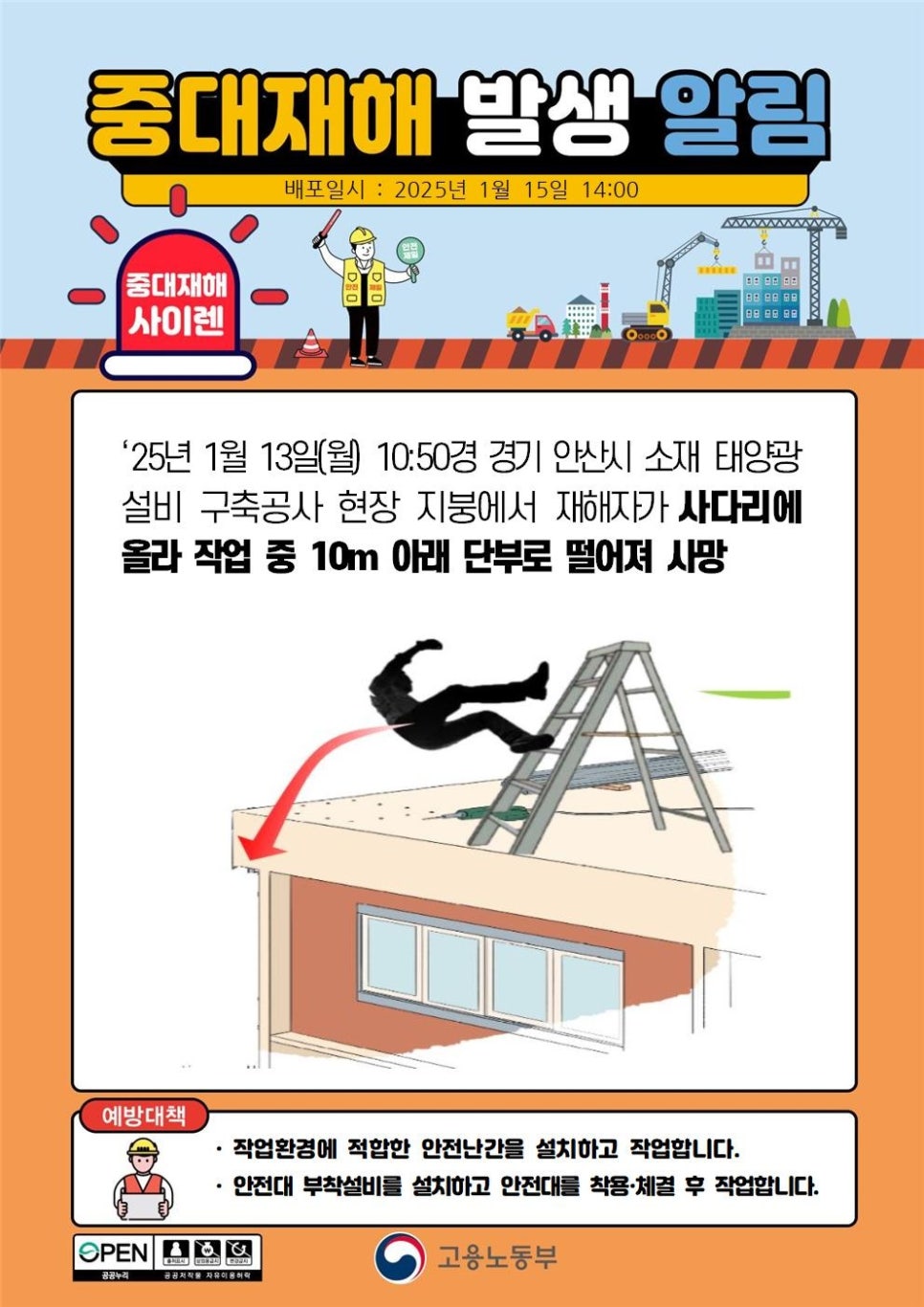 10시 50분경 경기 안산시 소재 태양광 설비 구축공사 현장 지붕에서