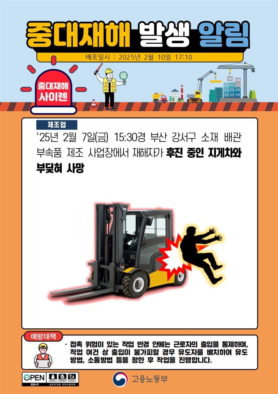 재해자가 후진 중인 지게차와 부딪혀 사망