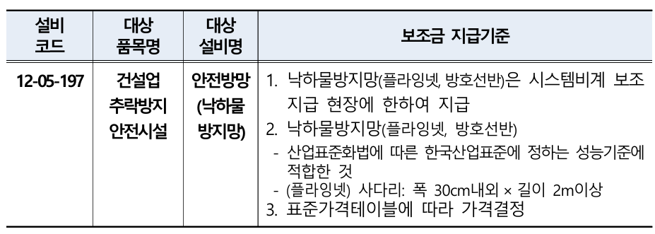 추락방지용 안전시설 신규품목(1개품목)