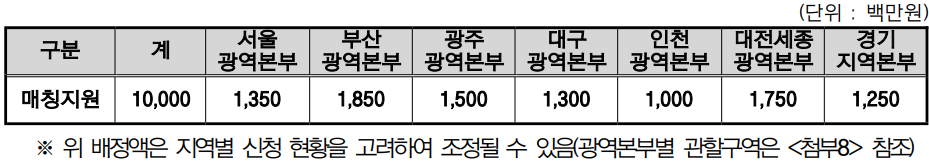 ※ 참여 사업장들의 매칭지원 총 신청금액이 정부예산(100억)을 초과하는 경우 사업장별 지원 금액이 일부 조정될 수 있음