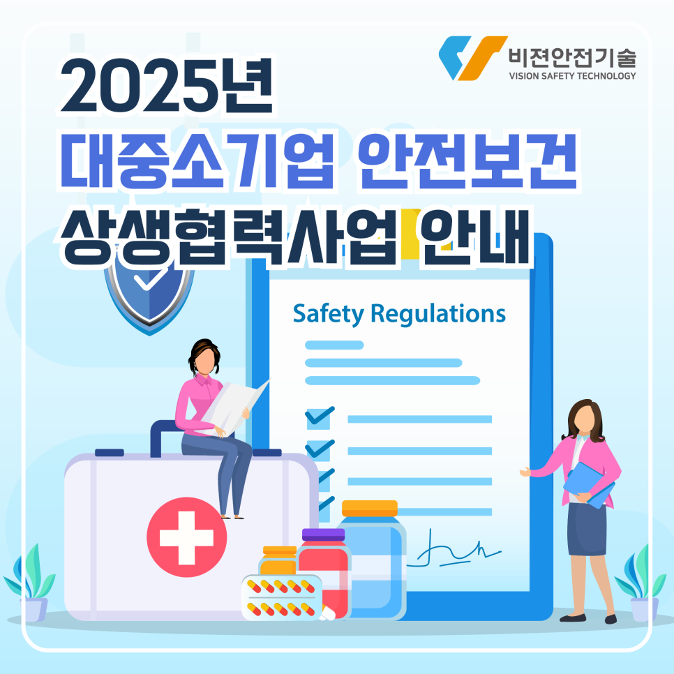안녕하세요. 비젼안전기술(주)입니다. 오늘은 안전보건공단에서 진행중인 대기업과 중소기업이 자율적으로 연대하여 스스로 안전보건에 관한 상생 해법을 마련하여 실천하고, 정부가 기술·재정적으로 지원하여 우수모델을 발굴·확산하는「2025년 대·중소기업 안전보건 상생협력사업」에 대해 알려드리려고 합니다. 아래의 지원 내용과 첨부된 파일을 확인하시어 지원 자격을 검토 해보시기바랍니다.