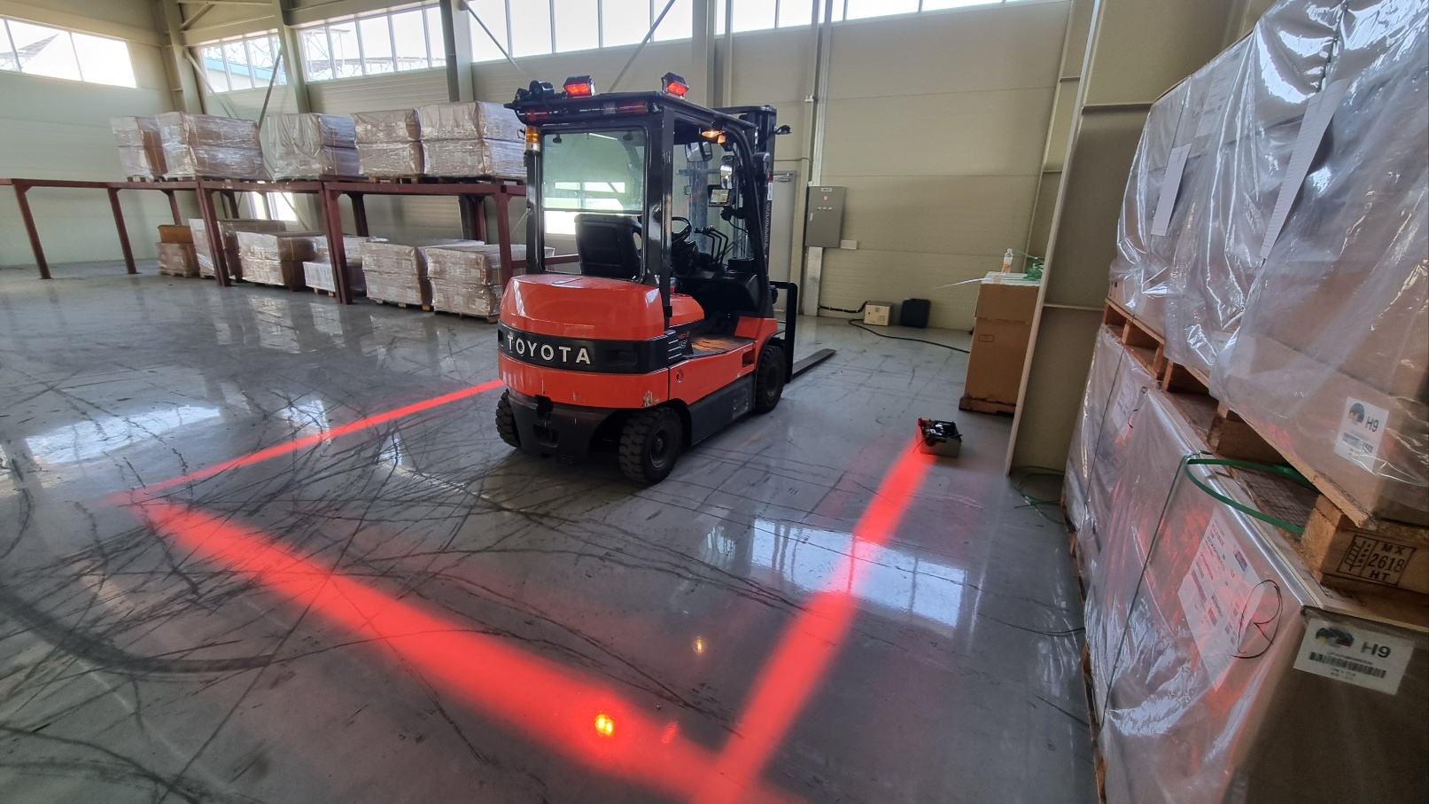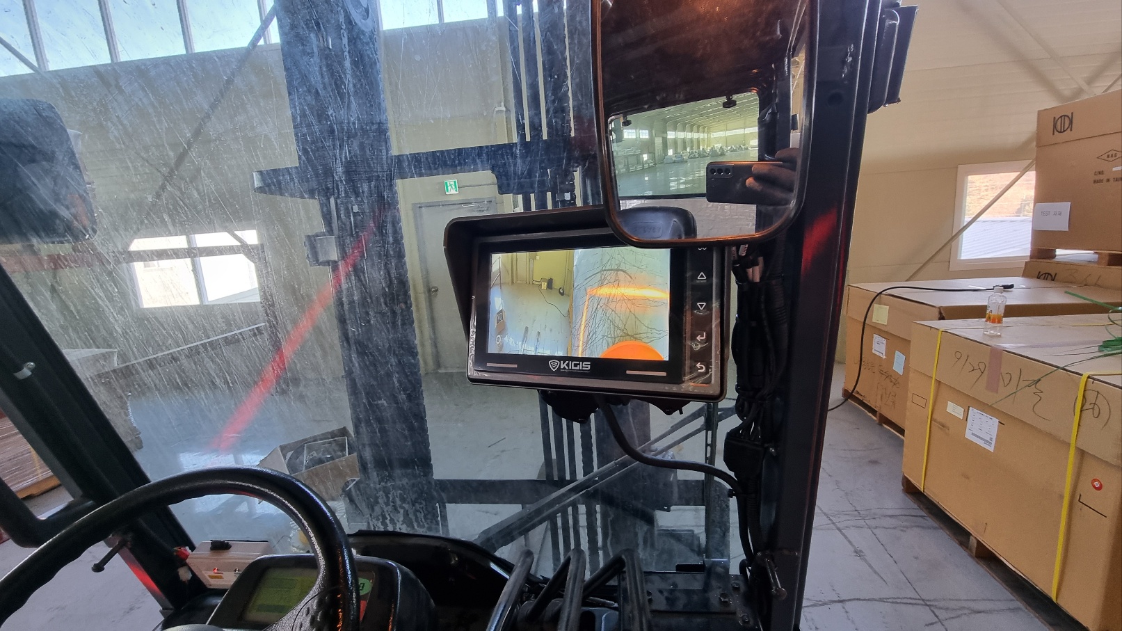 한국카본 지게차 AI 카메라+라인라이트 시공