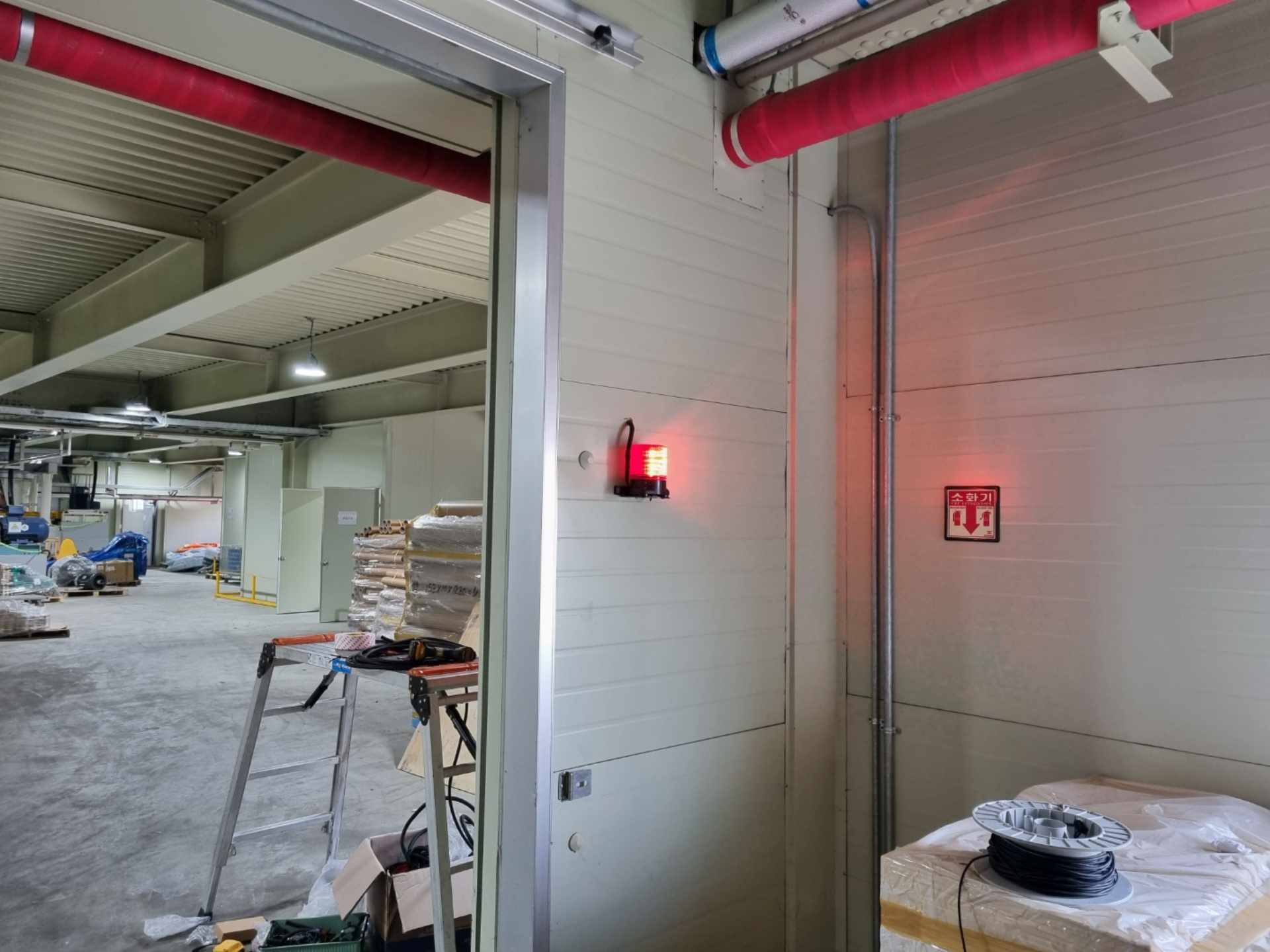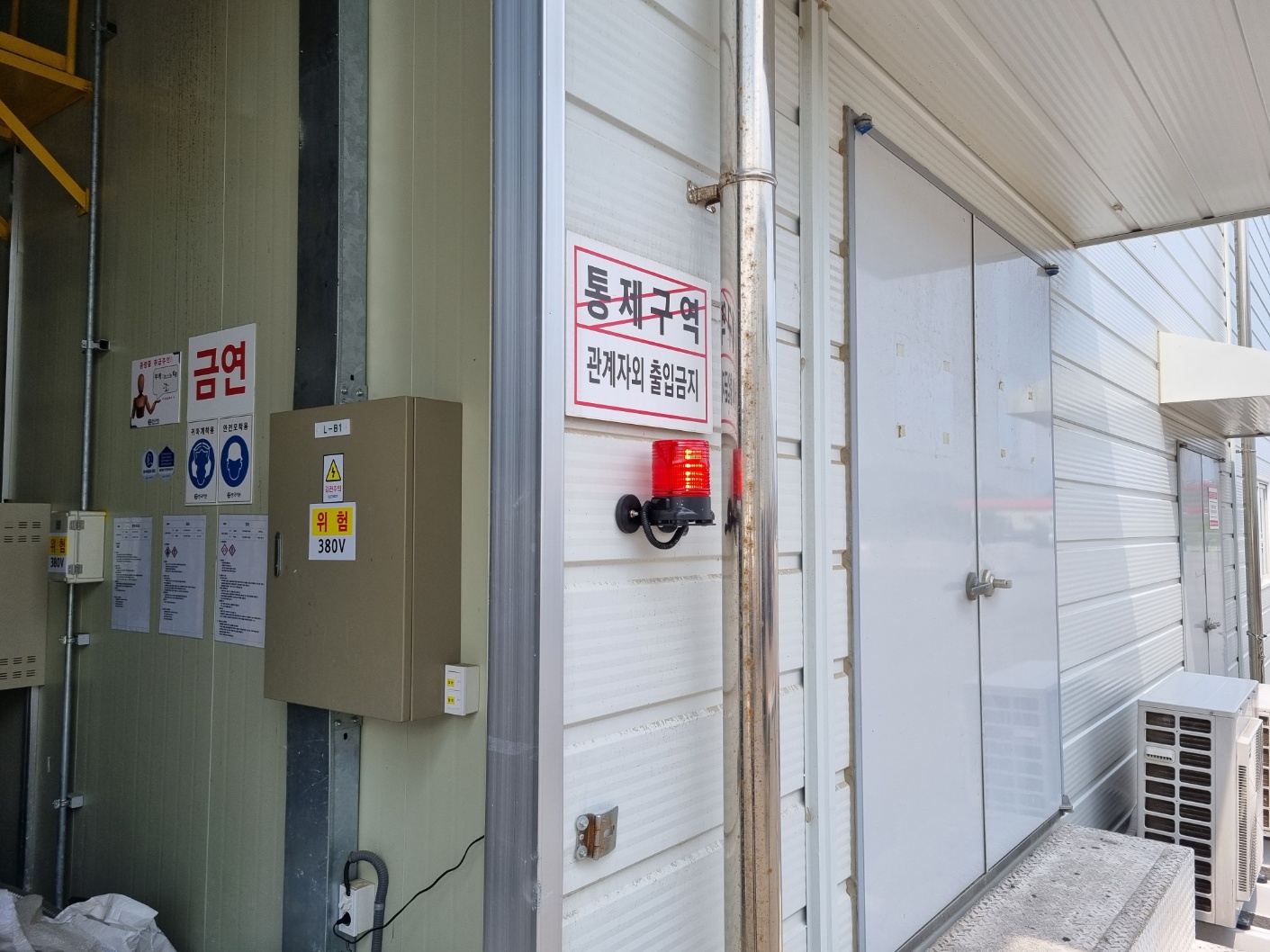 한국카본 충북보은공장 출입구 경광등 태그 시공