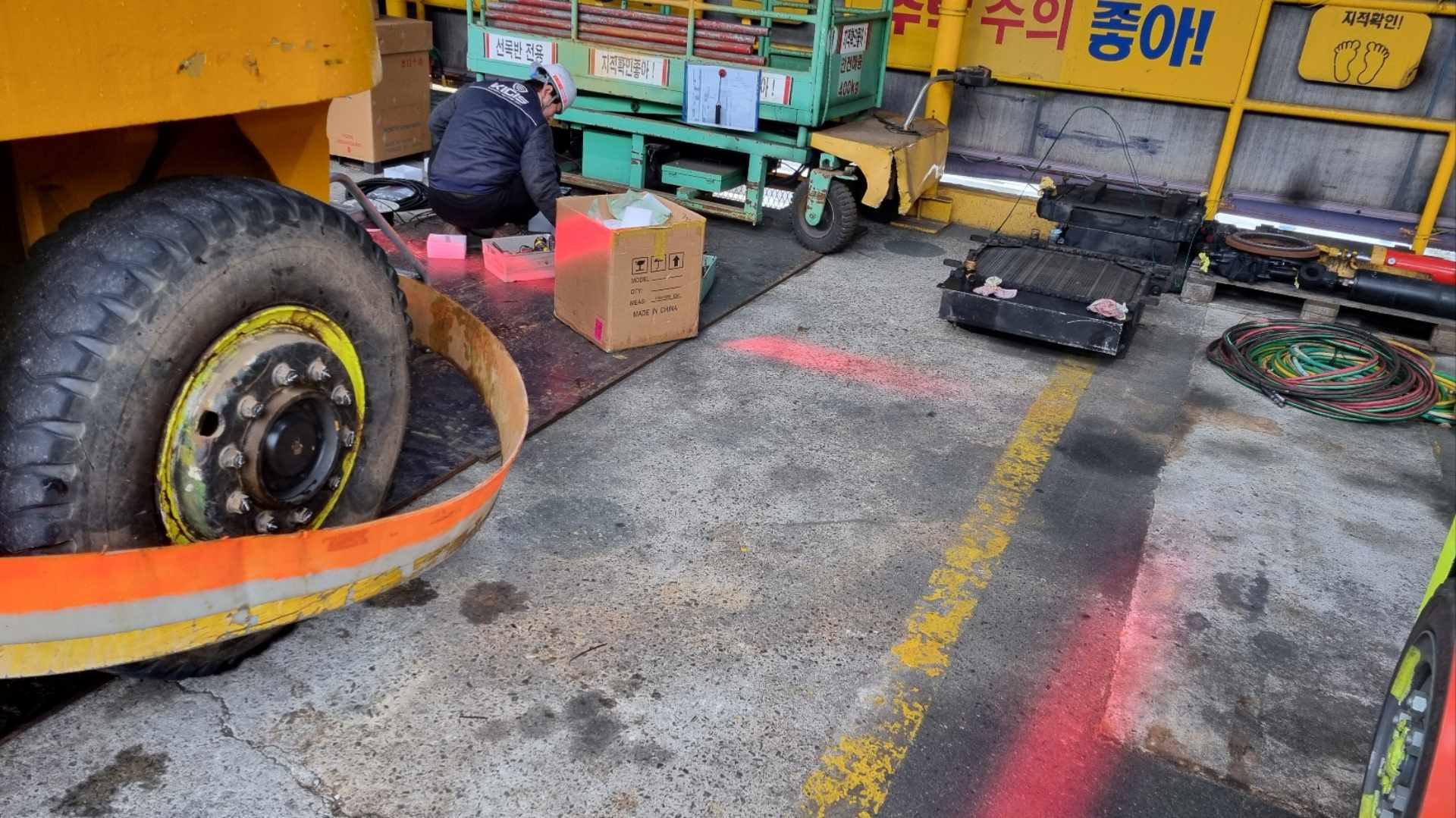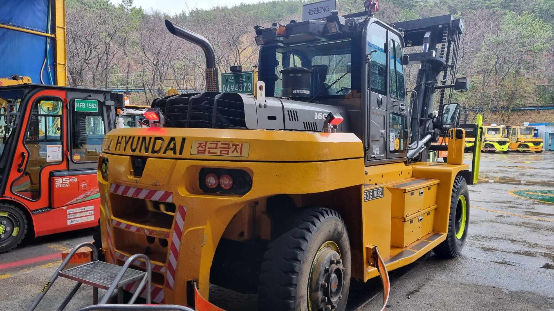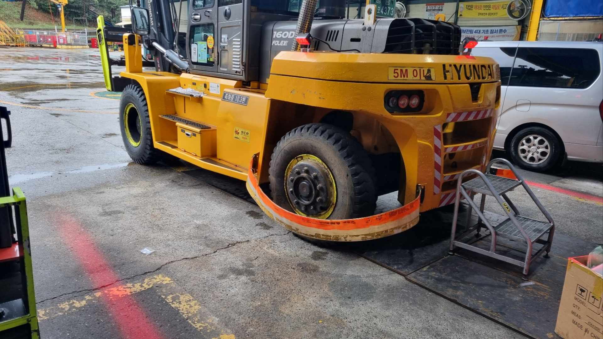 한화오션 10톤 지게차 AI 카메라+라인라이트 시공
