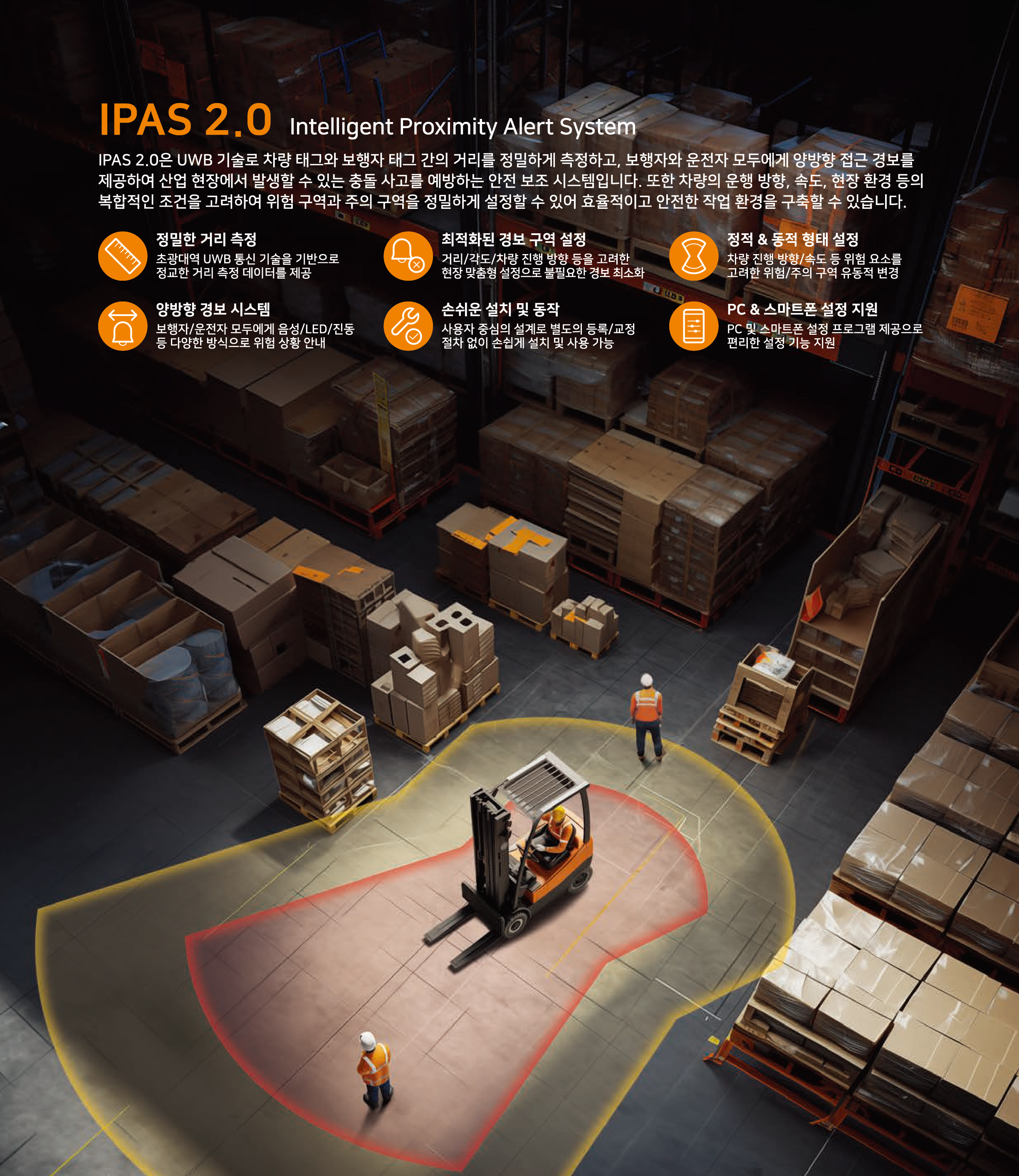 차량이 위험 구역에 진입할 때, 경광등 태그가 차량 태그를 감지하여 경고음, 스피커를 통한 안내 음성, 그리고 경광등의 빛으로 주변 작업자에게 위험을 알려줍니다. 이 시스템은 모서리나 출입문과 같이 시야가 제한된 구역에 설치되어 작업자들에게 즉각적인 경고를 제공하여 사고를 예방할 수 있습니다. 이러한 기능을 통해 차량과 주변 환경을 보다 안전하게 유지하고 작업 환경에서의 위험을 최소화할 수 있습니다. 위험 구역에서의 안전성을 강화하는 데 유용한 시스템입니다.